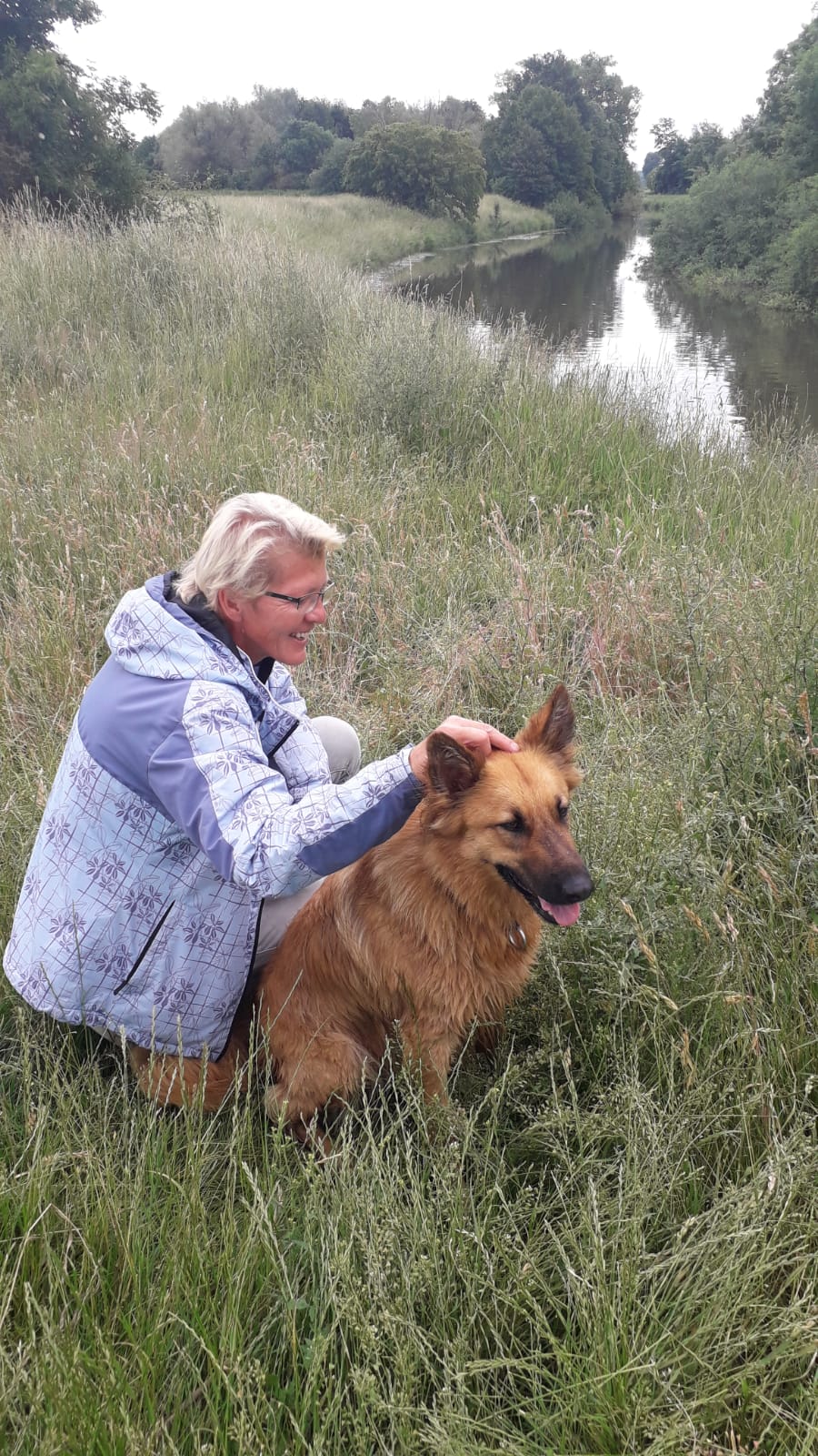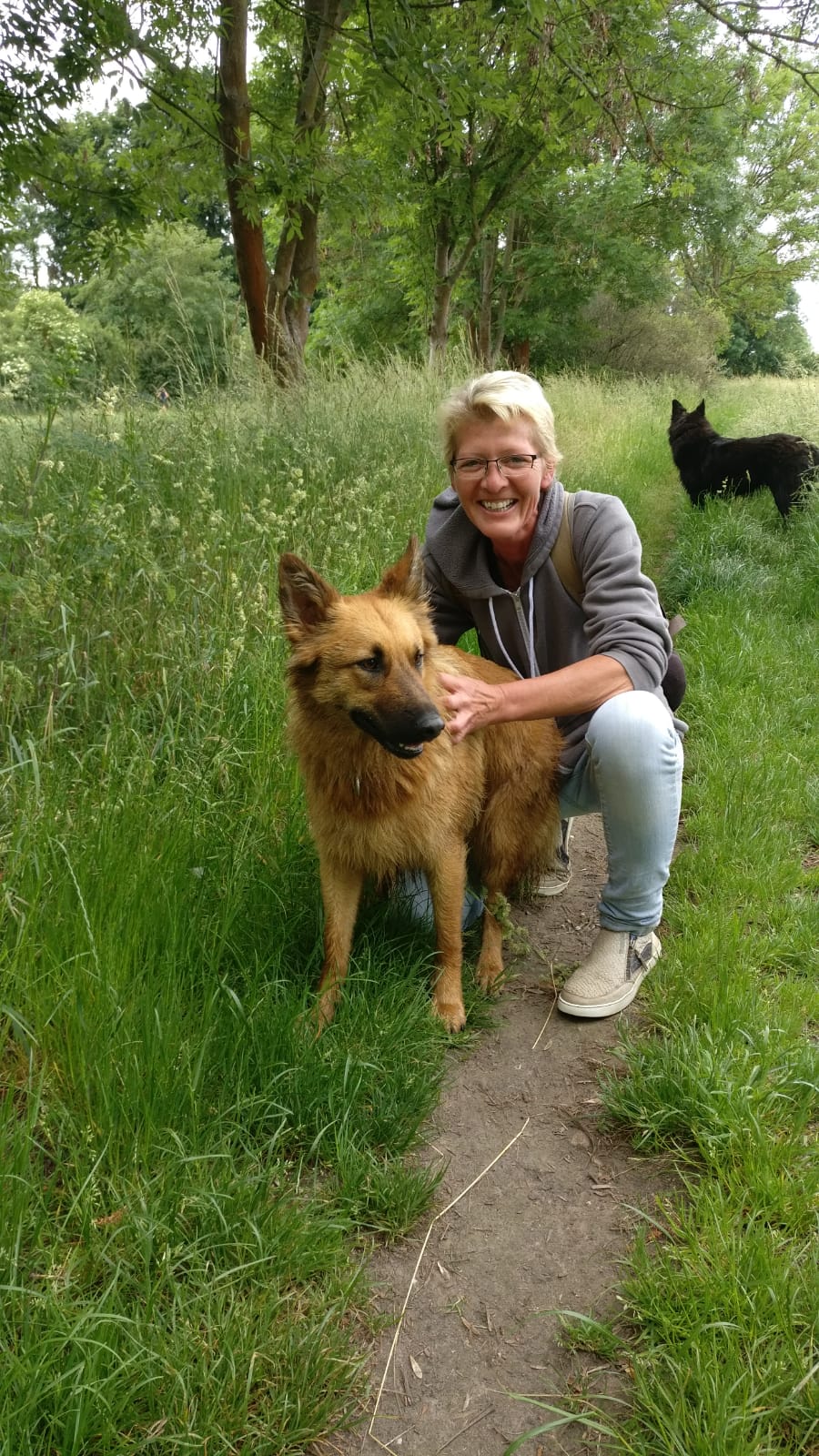 Mein Name ist Frauke Chevallier und ich besitze eine Harzer Fuchs Hündin. Sie ist jetzt 2 Jahre alt und reagierte bei Knallerei ängstlich bis panisch. Auch die Schüsse der Jäger veranlassten sie, selbst mehrere Tage danach noch, nicht mit mir weiter in Richtung des Schussgebietes zu laufen. Aus diesem Grund habe ich mich für Knaller-Desensibilisierung entschieden. Zum Glück kenne ich einen Hundetrainer dem sie sehr vertraut und der mit mir diese Aufgabe angegangen ist .Im Feuerwerksladen in Fechenheim fand ich große Unterstützung für mein Vorhaben und man stellte mir ein Sortiment verschiedener Knaller und Böller zusammen . Bevor wir sie mit den Knallern konfrontierten, sind wir mit ihr eine Stunde Fahrrad gefahren, um sie zu ermüden. Danach hatte er sie an der Leine und wir ließen sie die Knaller beschnüffeln. Den ersten kleinen Knaller warf ich im Abstand von 5 Metern . Sie hatte nicht einmal gezuckt. Daraufhin durfte sie auch diese Stelle beschnüffeln. Wir liefen weiter und ich warf immer wieder einen Knaller. Als die Knallerei etwas lauter wurde, musste er sie ein- zweimal korrigieren.( d.h. Sie sollte weiter ordentlich an der Leine laufen. Dann gingen wir in ein kleines Wäldchen dort legte sie sich selbstständig, trotz wilder Knallerei, ab. Er machte sie von der Leine. Nach weiteren 5 Knallern rannte sie aus dem Wäldchen, ich denke sie hatte die Nase voll. Sie war aber gar nicht ängstlich und legte sich am Eingang des Wäldchens in den Schatten. Auf Rückruf kam sie wieder rein und ließ noch 3 weitere Knaller über sich ergehen. Als sie zur Belohnung in der Nidda ein Bad nehmen durfte, hat sie deutlich ihren Stress abgewaschen und sich komplett entspannt. Einen Tag später bin ich alleine mit ihr die selbe Strecke gelaufen, auch da war sie überhaupt nicht nervös. Die nächsten 3 Tage habe ich noch jeweils einen Knaller im Garten gezündet. Sie ging dann 5 Meter weg , kam aber danach sofort wieder ran. Sie mag die Knallerei nach wie vor nicht aber sie reagiert nicht mehr panisch. Ich denke ich muss noch ein paar Knaller besorgen ,damit sie es noch gelassener sieht. Vor drei Wochen waren die Jäger im Nordpark unterwegs. Ich hatte sie an der Leine und sie zog sehr stark. Ich blieb einfach stehen beachtete sie gar nicht . Dann legte sie sich ab und sie sah, wie in ca. 20 Meter Entfernung eine Krähe abgeschossen wurde. Danach massierte ich sie und machte sie von der Leine, da war die Rute wieder oben und sie ging weiter mit mir spazieren. Ich werde sie weiterhin immer mal wieder damit konfrontieren und wünsche mir ,dass sie irgendwann gar nicht mehr darauf reagiert. Aber so bin ich auch schon recht zufrieden, da ich nicht glaube , dass sie zukünftig panisch weglaufen würde, wenn es irgendwo knallt. Es ist wichtig unsere Tiere zu desensibilisieren, um uns und ihnen den jährlichen Stress zu nehmen. Ich danke für Ihre freundliche Unterstützung.